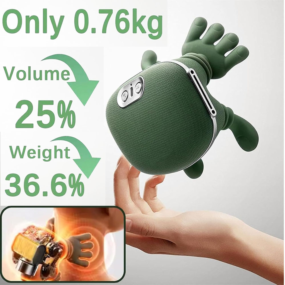 Snap Multi Hand Shoulder & Neck Massager Pillow, Deep Tissue with Heat. The massager applies focused kneading pressure to trigger points, mimicking the movements of a professional masseur’s thumbs and palms.